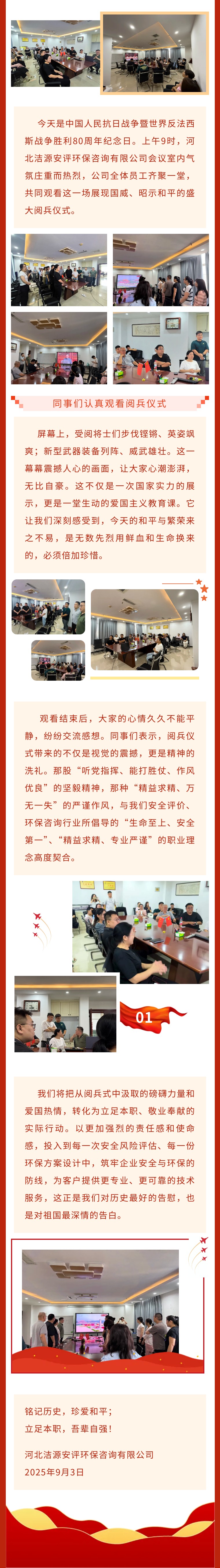銘記歷史,吾輩自強(qiáng) | 河北潔源組織員工觀看紀(jì)念抗戰(zhàn)勝利80周年閱兵儀式